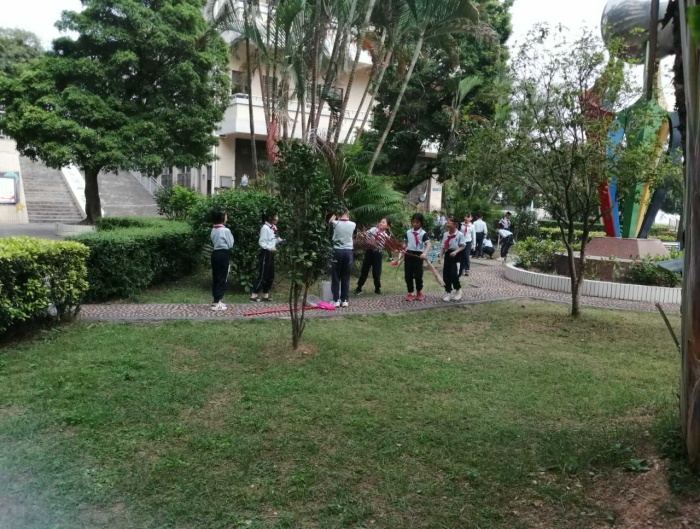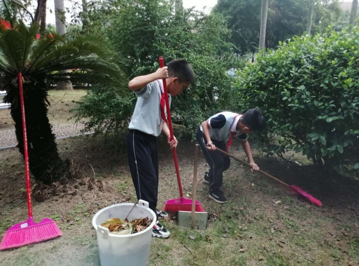 活動在午練時進行。三年級的孩子們帶上手套、掃把、垃圾鏟和垃圾桶興高采烈地來到花園里。年級組長韋丹麗老師向同學(xué)們詳細講述了這一次活動的主要任務(wù)和勞動分工后,同學(xué)們聽從老師的指揮,彎起腰,蹲下去,擼起袖子,三兩成堆,邊說邊循著有草的地方,用力抓緊草根,使勁拔,把一棵棵影響校園美觀的雜草除掉。三年級的孩子雖然小小年紀,但他們不怕臟,不怕累,不懼怕地上的昆蟲和螞蟻,認真地完成老師安排的任務(wù)。話動中,同學(xué)們個個干勁十足,不忽視每一個細節(jié),不放過每一個死角,一棵棵雜草被同學(xué)們一雙雙有力的小手鏟除掉。同學(xué)們邊說邊笑,熱火朝天地快樂勞動著,此時,安靜的校園被孩子們勞動中的歡聲笑語感染著,洋溢著活力的氣息。芭蕉樹掉下的枯枝,又長又大,很難處理,這個難題把同學(xué)們困住了,不知怎么處理。這時,突然有一個同學(xué)冒出一個好主意,“踩著中間,折成兩段,放進垃圾桶里”。大家都為這個同學(xué)豎起大拇指。在同學(xué)們團結(jié)合作、互幫互助的努力下,花園又重換干凈、整齊的新面貌。同學(xué)們看到自己的勞動成果,心里美滋滋的。