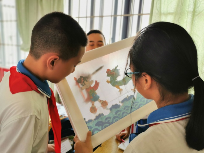 本次活動主要分為三個部分,第一部分為老師帶領(lǐng)學生認識皮影。讓學生了解到皮影是一種以獸皮或紙板做成的人物剪影,在燈光照射下用隔亮布進行演戲,是中國民間廣為流傳的傀儡戲之一。表演時,藝人們在白色幕布后面,一邊操縱戲曲人物,一邊用當?shù)亓餍械那{(diào)唱述故事,同時配以打擊樂器和弦樂,有濃厚的鄉(xiāng)土氣息。