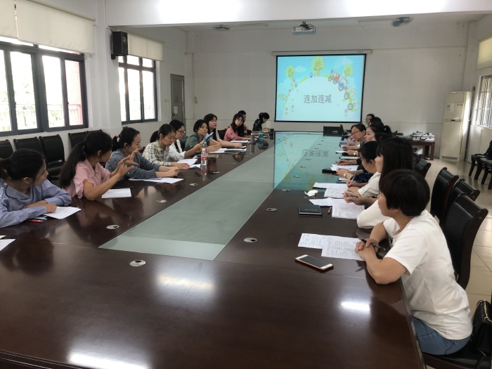 第二環(huán)節(jié),備課團隊就這堂課的知識點在起因、學情與教材、教學目標、教學方法等方面進行闡述。一年級備課組長李春霞老師認為:連加連減這一知識點經常用來解決生活中的問題,它不但是對加減法含義的拓展,也是新課標提出的人人都能獲得必要的數學這一理念的體現。這節(jié)課通過小組合作,教師注重讓學生說,去表達,培養(yǎng)學生的觀察能力和表達能力。