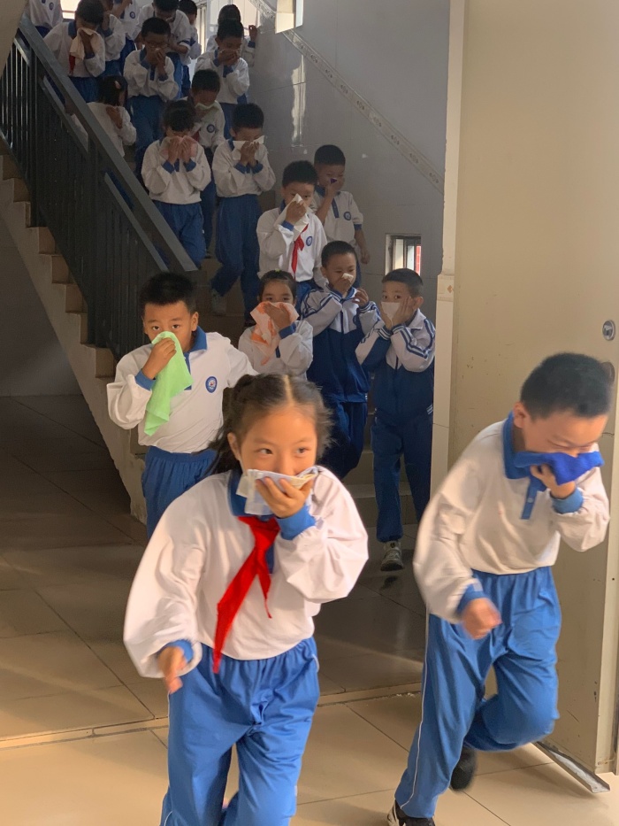 在演練前,各班主任對學(xué)生進行了消防演練安全教育,讓學(xué)生明白大火無情,提醒學(xué)生演練時注意用毛巾或手捂住鼻子和嘴巴,彎腰低頭撤離,在撤離演習(xí)過程中,不能推拉其他人,下樓梯時特別要注意安全。