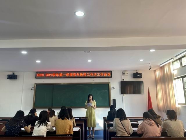 會(huì)議先由工作坊組長黃甜老師發(fā)言,她介紹了本學(xué)期青年工作坊的培養(yǎng)目標(biāo)、方式、具體要求及活動(dòng)安排。其中,培養(yǎng)目標(biāo)為“以提高教師教學(xué)基本功為目的,提高教師課堂教學(xué)素養(yǎng)為核心,建立“自我學(xué)習(xí)—同伴診斷—反復(fù)修正—共同提高”的培養(yǎng)模式。”;具體要求為制定發(fā)展規(guī)劃、抓教學(xué)基本功訓(xùn)練、提高教學(xué)素養(yǎng)、培養(yǎng)自己的興趣特長;活動(dòng)安排為每月一個(gè)培訓(xùn)主題,主要有寫作訓(xùn)練、基本功訓(xùn)練、團(tuán)建活動(dòng)、小組合作模式課堂展示、許市中學(xué)小組合作學(xué)習(xí)模式及分享會(huì)暨讀書分享會(huì)。