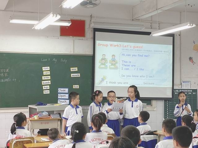 陳老師在四2班進(jìn)行了Unit5 My Body詞匯課展示,陳老師課前充分準(zhǔn)備,在這堂課上,她充分展現(xiàn)了教學(xué)基本功,其教學(xué)過程,運用TPR等多種方式激發(fā)學(xué)生學(xué)習(xí)興趣、調(diào)動課堂氛圍,創(chuàng)設(shè)出有趣、活潑的教學(xué)情境,逐步引導(dǎo)學(xué)生融入課堂教學(xué)中,合理有序的小組合作導(dǎo)學(xué)案,使學(xué)生大大增加了語篇輸入量。在游戲教學(xué)、師生互動、生生互動之間很自然地掌握新單詞、新句型,教學(xué)效果好,學(xué)生參與面廣,課堂氣氛積極活躍。同時本節(jié)課充分展示了對我的身體部位的主題意義的探究,挖掘主題所承載的文化信息和發(fā)展學(xué)生思維品質(zhì)的關(guān)鍵點,培養(yǎng)學(xué)生的核心素養(yǎng)。