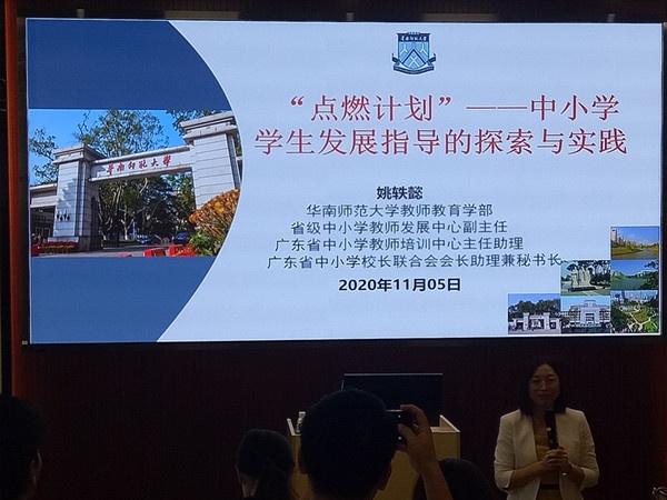 今天邀請來主講的專家是潘莉碩士和姚軼懿主任。上午主講的是潘莉碩士,她是暨南大學(xué)碩士,廣東省中小學(xué)名班主任,珠海市名班主任工作室主持人,主講的題目是《情緒情感策略在中小學(xué)德育工作中的運用實踐》。下午主講的是姚軼懿主任,她是華南師范大學(xué)教師教育學(xué)部院長助理、華南師范大學(xué)省級中小學(xué)教師發(fā)展中心副主任、廣東省中小學(xué)校長聯(lián)合會會長助理兼秘書長,她主講的題目是《“點燃計劃”——中小學(xué)學(xué)生發(fā)展指導(dǎo)的探索與實踐》。