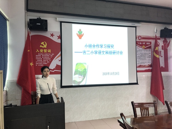 10月29日,為了落實課改的要求,在教育教學(xué)上大力推行適合小學(xué)語文課堂的小組合作模式,結(jié)合古二小學(xué)以及各自班級的實際情況,研究探討小組合作學(xué)習(xí)的模式,利用周四下午語文科組科研活動時間,在三樓會議室,進行了一場別開生面的“小組合作”研討會。本次會議由科組長黃藝容老師主持,古二小學(xué)副校長袁潔云校長也參加了本次活動。