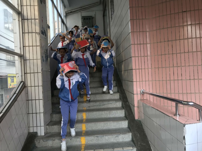 上午第一節(jié)課下課,校園各樓梯口疏導(dǎo)人員提前就位,警報(bào)響起后,學(xué)校防震緊急疏散演練活動(dòng)正式開始。首先學(xué)校廣播發(fā)出地震預(yù)警信號(hào)師生迅速躲避,學(xué)生蹲在課桌兩側(cè)或課桌底,手交叉或用書本等物品護(hù)住頭部。隨后廣播發(fā)出疏散信號(hào),每班第一節(jié)的任課老師按照安排疏散順序,帶領(lǐng)學(xué)生按照疏散路線迅速、有序地疏散到指定的“安全地帶”。全體學(xué)生到指定位置集合,清點(diǎn)人數(shù),并上報(bào)級(jí)組長,最后各班整理隊(duì)伍,陳校長點(diǎn)評(píng)本次防震疏散演練,強(qiáng)調(diào)防震演練的重要性。