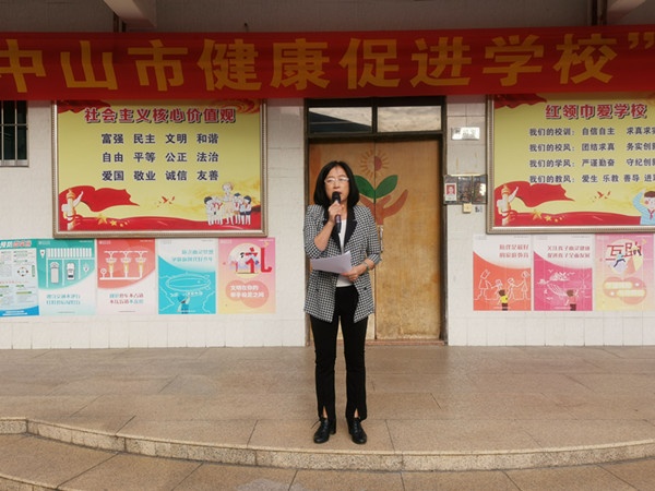 11月9日早上,秋高氣爽,陽光明媚,隨著主持人激情滿滿地宣布:古二小學(xué)創(chuàng)建“中山市健康促進(jìn)學(xué)?!眴?dòng)儀式現(xiàn)在開始!中山市古鎮(zhèn)鎮(zhèn)古二小學(xué)創(chuàng)建“中山市健康促進(jìn)學(xué)校”行動(dòng)拉開了帷幕。本次活動(dòng)全校八百多名師生參與,袁潔云校長(zhǎng)發(fā)出“健康與幸福同在,安全與和諧同行”的行動(dòng)口號(hào),并向全體師生倡議:1.追求健康,把投資健康作為最大的回報(bào);2.積極參加體育鍛煉,增強(qiáng)體質(zhì);3.吃營(yíng)養(yǎng)健康的食物,遠(yuǎn)離垃圾食品,合理搭配膳食結(jié)構(gòu),規(guī)律用餐,保持營(yíng)養(yǎng)平衡;4.充足睡眠,早睡早起保證上課認(rèn)真聽講和復(fù)習(xí)的效率;5.每天足量補(bǔ)水,健康飲水;6.加強(qiáng)心理健康意識(shí)。