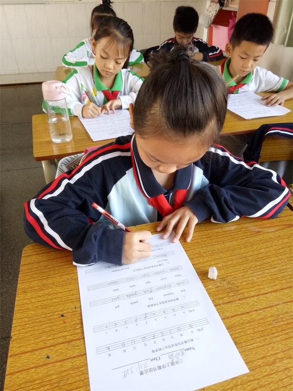 為規(guī)范同學(xué)們的書(shū)寫(xiě),比賽要求同學(xué)們用手寫(xiě)體書(shū)寫(xiě)每一個(gè)字母。在比賽過(guò)程中,同學(xué)們認(rèn)真對(duì)待,發(fā)揮出自己最好水平。監(jiān)考的老師還對(duì)同學(xué)們寫(xiě)字的正確坐姿和書(shū)寫(xiě)的正確方法進(jìn)行提醒監(jiān)督,以便養(yǎng)成良好的書(shū)寫(xiě)習(xí)慣。
