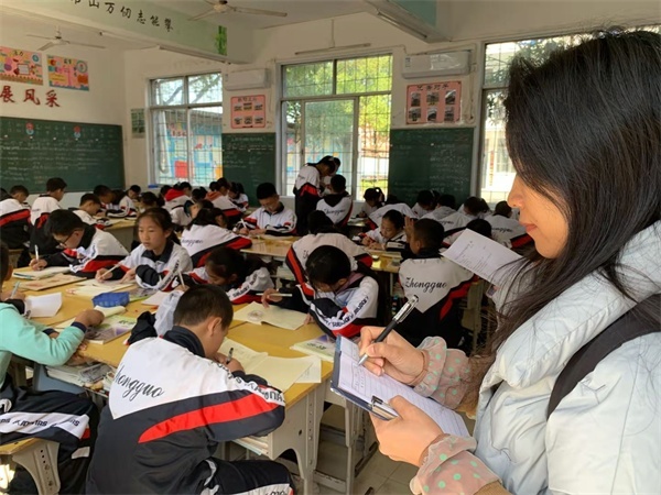 接著,蘇麗梅老師觀摩許市中學(xué)德育課程:升旗儀式。升旗儀式是許市中學(xué)的一個(gè)特有的德育教學(xué)課程,全程還是有學(xué)生進(jìn)行組合及主持,程序包括:出旗、消防主題國旗下講話、學(xué)生宣誓、學(xué)生會(huì)寄語、未來新要求等。升旗儀式結(jié)束后,由學(xué)生會(huì)主席給上周的優(yōu)秀班級(jí)進(jìn)行頒獎(jiǎng),由各班的分析數(shù)最高的優(yōu)秀小組上臺(tái)領(lǐng)獎(jiǎng),目的是榜樣作用及促進(jìn)班級(jí)凝聚力的養(yǎng)成。最后,蘇麗梅老師向許市中學(xué)的韓燕老師了解許市模式的班級(jí)組建、小組構(gòu)成、班規(guī)形成等方面內(nèi)容。對于開放式小組,學(xué)習(xí)模式,蘇麗梅老師作了詳細(xì)的了解,并認(rèn)真做好了記錄。