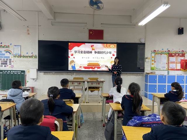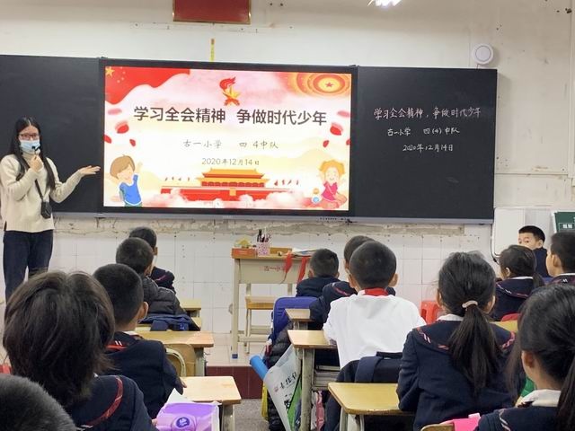 為了進一步讓隊員們感受現(xiàn)在的生活是來之不易的,學(xué)習(xí)珍惜現(xiàn)在,逐夢未來。升旗儀式完畢后,各中隊回到教室繼續(xù)深入學(xué)習(xí)會議的精神和內(nèi)涵,開展“學(xué)習(xí)全會精神,爭做時代少年”的主題隊會,讓會議的精神都內(nèi)化在每位隊員心中。隊員們在班會上暢所欲言,謀劃我國未來的發(fā)展的藍圖。