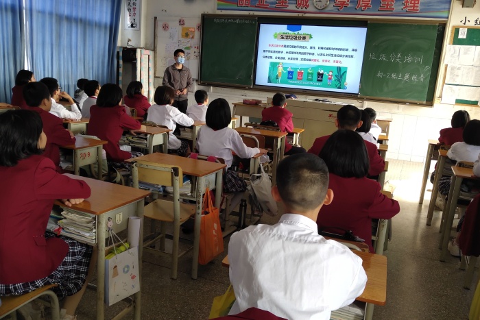 李老師首先讓學(xué)生以小組為單位交流對(duì)垃圾分類的認(rèn)識(shí),然后結(jié)合學(xué)生代表發(fā)言和PPT圖片講解有關(guān)知識(shí),上述環(huán)節(jié)后,學(xué)生們認(rèn)識(shí)到了垃圾是由人類日常生活和生產(chǎn)中產(chǎn)生不被需要或無(wú)用的固體、流體物質(zhì)。生活垃圾分類關(guān)系人民群眾日常生活,對(duì)于推動(dòng)生態(tài)文明建設(shè)、提升社會(huì)文明程度、創(chuàng)新基層社會(huì)治理都有著重要意義。