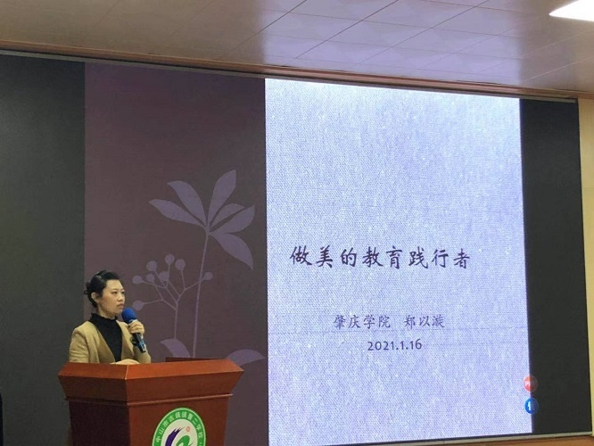上午分享的第一位老師是曹二小學(xué)副校長李培新,李副校長分享的主題是《教師的個人發(fā)展和規(guī)劃》。李副校長首先感謝各位領(lǐng)導(dǎo)和老師的關(guān)照,體會到曹二小學(xué)是一個溫暖的大家庭,能來到曹二小學(xué)工作感到非常幸運(yùn)。接著,李副校長結(jié)合參與教師職稱評審的工作經(jīng)歷,詳細(xì)地分析了中小學(xué)中高級職稱評審條件,勉勵在座的年輕教師做好教師個人規(guī)劃,提前準(zhǔn)備。接著,曹二小學(xué)副校長鄭以漩以《做美的教育的踐行者》為主題,結(jié)合她在高校的工作經(jīng)歷和音樂教學(xué)經(jīng)驗(yàn),從語言美,行為美、著裝美等多方面鼓勵老師們做美的教育的踐行者。