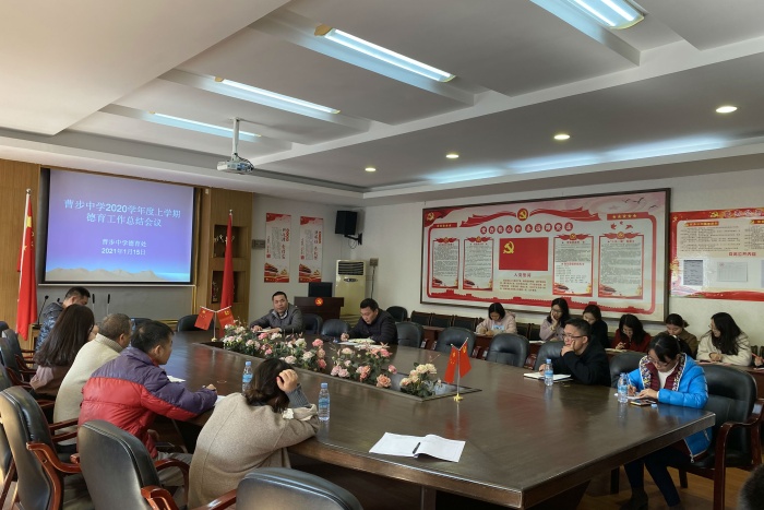 2021年1月15日上午,曹步中學(xué)德育處召開了2020學(xué)年度上學(xué)期最后一次德育工作會議。本次會議由德育處主任鄧妃弟主持,全體班主任、級組長等相關(guān)人員參加了會議。