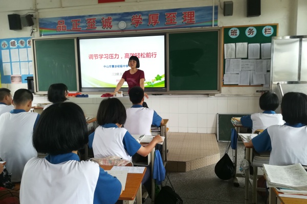 2020年6月8日上午,曹步中學(xué)初三3班,班主任黃瑞蘭老師召開了一節(jié)關(guān)于學(xué)習壓力的主題班會。 首先黃老師讓同學(xué)們先做一個心理小測試,用一張圖片測試我們的學(xué)習壓力,測試結(jié)果每個同學(xué)的學(xué)習壓力都不同,有的只有少許壓力、有的壓力過于太大、有的沒有什么壓力。黃老師接著分析人在各種情形下會感到壓力的存在,比如說考試前沒有復(fù)習擔心成績差,父母以及老師給予你厚望時,父母老師批評等。因為有壓力我們的情緒也都會隨之而變化,會感到緊張發(fā)抖,煩躁不安,失去信心等。學(xué)習壓力對于我們來說有利也有弊,適當?shù)膲毫τ欣诔浞职l(fā)揮潛能,反而過度的壓力不利于學(xué)習的進步和成績的提高。但完全沒有壓力也是不行的,這樣會失去動力止步不前。 黃老師又播放了三個同學(xué)學(xué)習生活中的視頻,分析壓力和效率兩者的關(guān)系,建議同學(xué)們面對考試壓力的時候要從容面對和克服。第一點是要樹立正確的考試觀念,考試是具有偶然性和局限性的,一次的考試不能得出對學(xué)業(yè)的完整平價,更不應(yīng)決定一個人的命運。第二點是要調(diào)整自我期望,畢竟期望越大失望越大。第三點是增強自身實力。 學(xué)習生活中總會有壓力,感受到壓力是正常的,出現(xiàn)生理心理反應(yīng)也屬正常。同學(xué)們從容面對壓力,學(xué)會自我調(diào)節(jié),高效輕松前行。
