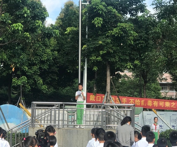 6月22日,艷陽高照,曹二小學(xué)在操場上舉行了第十九周升旗儀式。本次國旗下講話的主題是“拒染毒品,向陽花開”。
