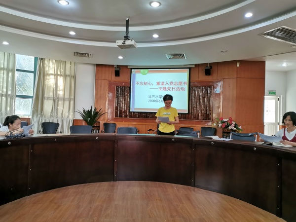 6月24日下午,古三小學(xué)黨支部開展“不忘初心,重溫入黨志愿書”主題黨日活動(dòng)?;顒?dòng)中,古三小學(xué)黨支部14名黨員以重溫入黨志愿書的形式,進(jìn)一步牢固樹立“四個(gè)意識(shí)”,堅(jiān)定“四個(gè)自信”,做到“兩個(gè)維護(hù)”。會(huì)議由黨支部書記孫亮珍同志主持。