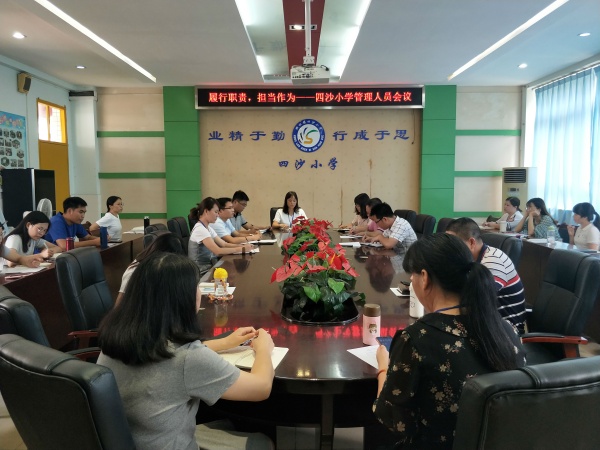 為進一步做好學(xué)校的管理工作,提升管理效能,6月29日下午,四沙小學(xué)在會議室召開了學(xué)校管理人員會議。全體管理人員圍繞防控新冠肺炎疫情所做的工作進行了匯報,也對期末和暑期圍繞學(xué)校雅行教育的工作進行了構(gòu)思。