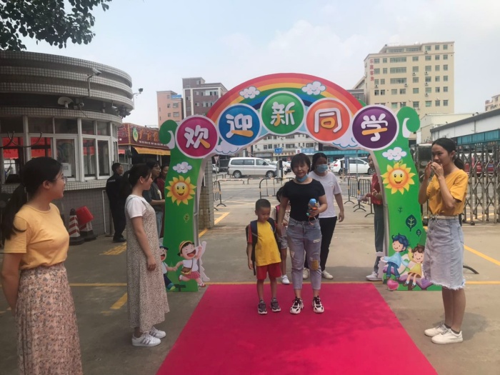 當(dāng)天下午,一年級(jí)的新生在家長(zhǎng)的帶領(lǐng)下,高高興興地來到校園,按照學(xué)校的規(guī)劃先走紅地毯進(jìn)校園,然后簽到、找教室、找座位,此時(shí)孩子們臉上露出了初入校園的好奇和興奮的笑容。隨后,家長(zhǎng)們帶小孩到二樓班級(jí)簽到,并掃描二維碼加入班級(jí)微信群。