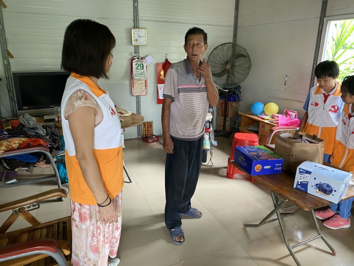 這次探訪為每一個(gè)家庭準(zhǔn)備了應(yīng)節(jié)的月餅、水果等禮物。首先,到達(dá)的是小杰和小軒家。去到小軒家,只見行動(dòng)不便的小軒奶奶坐在輪椅上正在庭院休息,身體欠佳的爺爺陪伴著。通過幾年來的走訪、聊天知道,小軒是個(gè)非常懂事的孩子,這孩子知道爺爺奶奶身體都不好,所以,在日常中都會(huì)幫忙做些力所能及的家務(wù)活,閑下來的時(shí)候一般都會(huì)陪伴在奶奶的身邊,甚至在奶奶住院治療期間非常懂事地獨(dú)自一人承擔(dān)起照顧奶奶的任務(wù)。因此,盡管生活相對(duì)比較困難,但聊天中能充分感受到爺爺奶奶表現(xiàn)出的對(duì)生活的美好憧憬。