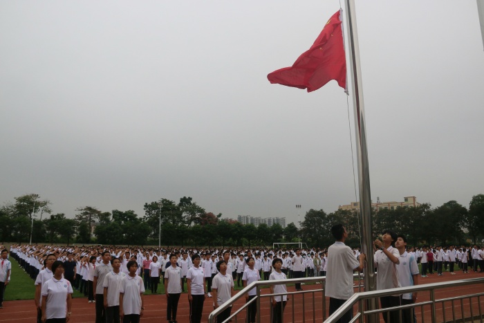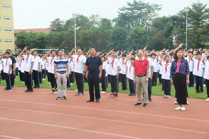 本次活動(dòng)分為三個(gè)議程。首先由橫欄中學(xué)團(tuán)委主持升旗儀式,主持人一句:“全體肅立,出國(guó)旗”,全體師生莊嚴(yán)肅穆,行注目禮,少先隊(duì)員的紅領(lǐng)巾在胸前飄揚(yáng),顯得格外耀眼。全校師生同升國(guó)旗,同唱國(guó)歌。升起的是祖國(guó)的希望和未來(lái),歌唱的是祖國(guó)的歷史和先烈。