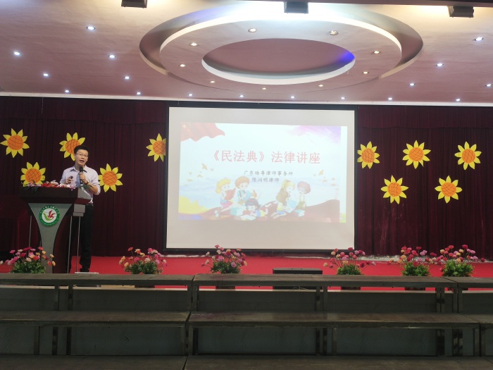 2020年5月28日15時(shí)08分,十三屆全國人大三次會(huì)議表決通過了《中華人民共和國民法典》,宣告中國“民法典時(shí)代”正式到來,并于2021年1月1日起正式施行。為深入、有效地開展《中華人民共和國民法典》學(xué)習(xí)宣傳活動(dòng),2020年10月16日下午,橫欄小學(xué)邀請(qǐng)了廣東皓粵律師事務(wù)所律師陳潤明作為《民法典》宣傳教育的宣講人,開展以“學(xué)習(xí)《民法典》,迎接新時(shí)代”為主題的民法典宣傳教育。