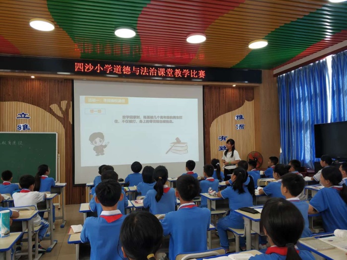 為了更有效的提高學(xué)校道德與法治課堂教學(xué)水平,交流教改經(jīng)驗(yàn),突破教改難點(diǎn),深入研究教材和教法,促進(jìn)教師專(zhuān)業(yè)成長(zhǎng),2020年10月15日上午,四沙小學(xué)在階梯室舉行了“橫欄鎮(zhèn)四沙小學(xué)道德與法治課堂教學(xué)大賽”。本次比賽針對(duì)40歲以上的老師開(kāi)展,通過(guò)預(yù)選,共有四位40歲以上的老師參加了比賽,比賽由四沙小學(xué)副校長(zhǎng)盧福棠、教務(wù)處主任梁洪華及部分德育處成員擔(dān)任評(píng)委。