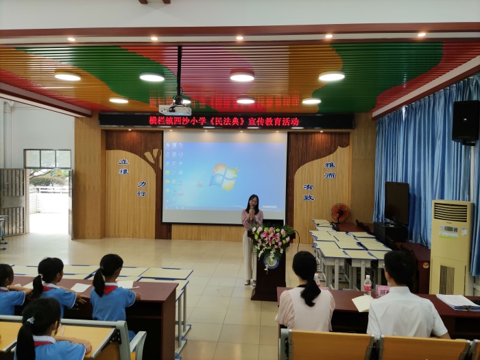 為扎實(shí)推進(jìn)推動(dòng)《中華人民共和國(guó)民法典》的學(xué)習(xí)和實(shí)施,幫助青少年樹(shù)立憲法意識(shí),10月14日下午,橫欄鎮(zhèn)司法所聯(lián)合橫欄鎮(zhèn)教育和體育事務(wù)中心在四沙小學(xué)舉行民法典知識(shí)座,由廣東憲鼎律師事務(wù)所許淑萍律師和原偉鉻律師主講。