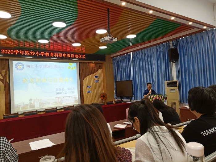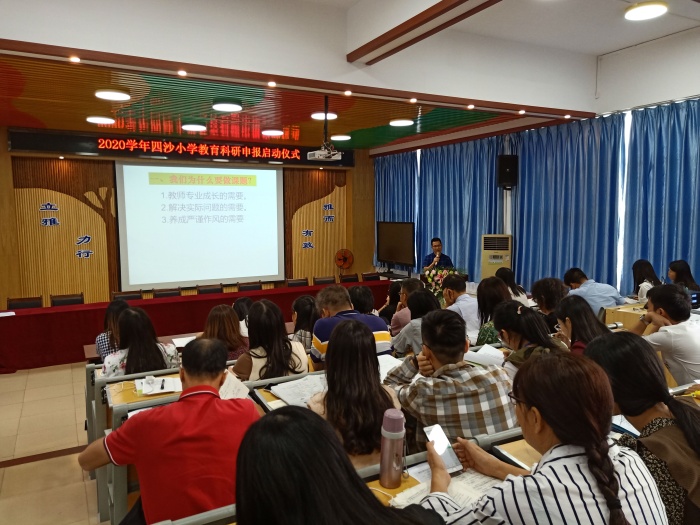 為進一步提高教師的教育科研能力,促進教師專業(yè)成長,形成“人人有課題 人人會研究”的科研氛圍,2020年10月19日下午,四沙小學在階梯室舉行了“教育科研與自我成長”的教師專業(yè)技能培訓。教務(wù)處主任梁洪華從課題研究的重要性、做課題難嗎、如何做課題和做課題的具體要求等四個方面對全體教師進行培訓。