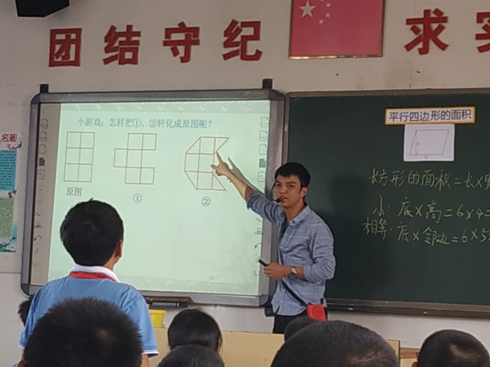 這次教研活動先由新教師羅勇執(zhí)教了《平行四邊形的面積》,展示了高效情趣數(shù)學(xué)課堂。課前,經(jīng)過多次充分試教,師徒結(jié)對全程參與精心打造,羅老師采用新穎、靈活的教學(xué)方法充分調(diào)動學(xué)生參與課堂的積極性,提高課堂教學(xué)的高效性;他上課思路清晰、條理清楚,尤其是導(dǎo)學(xué)稿的設(shè)計受到各位老師的好評,也達(dá)到了本校內(nèi)強(qiáng)素質(zhì)外樹形象的目標(biāo)。