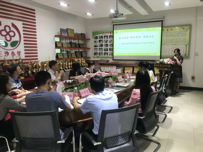 為進(jìn)一步加強(qiáng)名班主任工作室的建設(shè),10月15日下午,橫欄鎮(zhèn)三沙小學(xué)李金雪名班主任迎來(lái)了期滿考核活動(dòng)。橫欄鎮(zhèn)教育和體育事務(wù)中心冼偉勛德育專(zhuān)干、橫欄中學(xué)羅錫坤主任、李誠(chéng)斌主任等領(lǐng)導(dǎo)以及李金雪名班主任工作室全體成員出席了本次考核活動(dòng)。