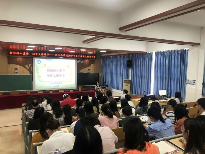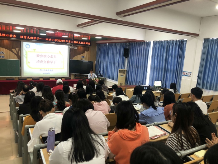 為了讓班主任進(jìn)一步了解學(xué)生發(fā)展核心素養(yǎng)的三個(gè)方面、六大素養(yǎng)和十八個(gè)基本要點(diǎn),全面落實(shí)學(xué)校培育文雅學(xué)子的工作目標(biāo),經(jīng)學(xué)校德育處籌劃, 11月2日上午,四沙小學(xué)在階梯室舉行了題為“聚焦核心素養(yǎng) 培育文雅學(xué)子”班主任培訓(xùn)會(huì)。