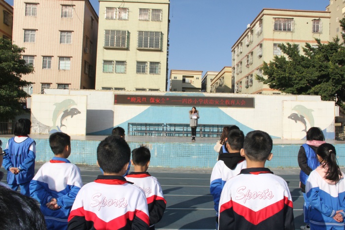 為讓學(xué)生平安快樂地度過2021年元旦假期,12月31日上午,四沙小學(xué)組織全校師生在田徑場(chǎng)上召開了“迎元旦 保安全”法治安全教育大會(huì)。大會(huì)由德育副主任黃麗君主講。