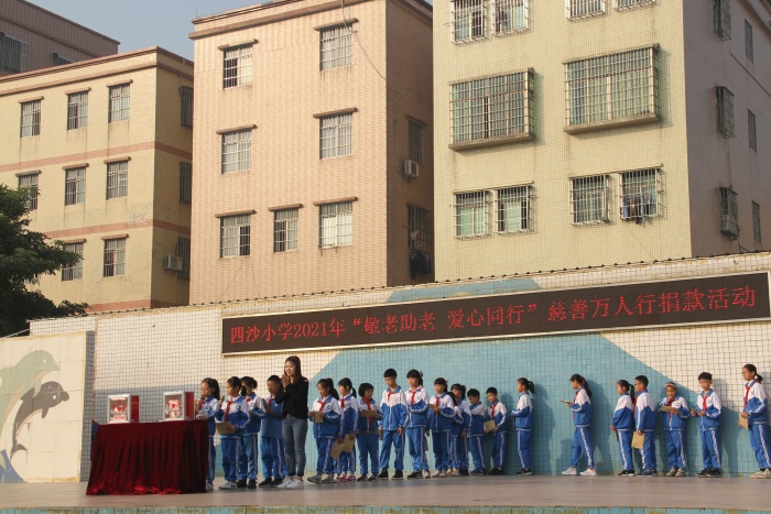 為貫徹落實(shí)《橫欄鎮(zhèn)2021年慈善萬(wàn)人行活動(dòng)方案》精神,弘揚(yáng)中華民族傳統(tǒng)美德,廣泛營(yíng)造“人道、博愛、奉獻(xiàn)”的行善氛圍,12月28日上午,四沙小學(xué)組織全校師生在田徑場(chǎng)上舉行了“敬老助老 愛心同行”2021年慈善萬(wàn)人行捐款活動(dòng)。