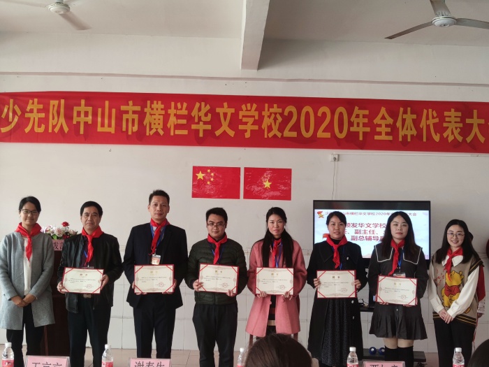 按照代表大會章程,審議通過了《中國少年先鋒隊中山市橫欄華文學校2020年代表大會選舉辦法(草案)》、選舉中國少年先鋒隊中山市橫欄華文學校第十二屆大隊委員會委員、表決通過了華文學校第二屆少工委委員;并由橫欄鎮(zhèn)團委書記鄭靜爽和鎮(zhèn)少工委總輔導員王京京為華文學校少工委主任、副主任、總輔導員、副總輔導員頒發(fā)證書,由華文學校謝春生校長為新當選的少工委委員們頒發(fā)證書。