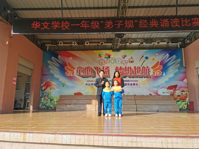 12月1日舉行了二年級(jí)誦讀經(jīng)典《三字經(jīng)》,12月2日舉行了一年級(jí)誦讀經(jīng)典《弟子規(guī)》?;顒?dòng)中,各班級(jí)展開激烈角逐,精心表演著各自準(zhǔn)備好的節(jié)目,從入場、隊(duì)列、表演、誦讀到退場,各個(gè)環(huán)節(jié)井然有序,每個(gè)班級(jí)都各有特色,充分展現(xiàn)了華文學(xué)?!耙话嘁惶厣?、一校一亮點(diǎn)”的班級(jí)文化和校園文化。同學(xué)們精神飽滿地演繹這千古名篇,再現(xiàn)了中華民族優(yōu)秀古詩文博大豐富的內(nèi)涵、崇高的思想境界和特有的藝術(shù)魅力。這些可愛的萌娃們?cè)诎嘀魅蔚闹笇?dǎo)下,或誦讀、或吟唱,再結(jié)合快板、舞蹈等現(xiàn)代表演形式,配上了美輪美奐的服裝和悠揚(yáng)動(dòng)聽的背景音樂,把詩文的意境表現(xiàn)得淋漓盡致,叫人贊不絕口!