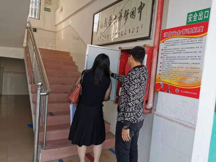 隨后,視導(dǎo)小組在學(xué)校行政的陪同下進行了實地查看。視導(dǎo)小組重點就校園功能場室、飯?zhí)谩⑾腊踩O(shè)施、校務(wù)公開、校園文化建設(shè)等情況進行實地查看。
