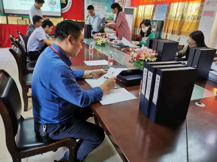 本次視導(dǎo)主要以查閱資料和實地察看為主。視導(dǎo)小組先是查閱了資料,小組成員根據(jù)《中山市民辦中小學(xué)規(guī)范達標(biāo)和品牌提升評估細(xì)則(試行)》內(nèi)容,對華文學(xué)校辦學(xué)方向、學(xué)校管理、教師隊伍建設(shè)、條件保障、辦學(xué)績效等五個方面進行了認(rèn)真細(xì)致的督導(dǎo)評估。在檢查資料的過程中,視導(dǎo)小組成員一邊向相關(guān)負(fù)責(zé)行政了解情況,一邊對照資料進行檢閱,對存在的問題及時記錄并向相關(guān)負(fù)責(zé)人反饋,以便學(xué)校及時整改。
