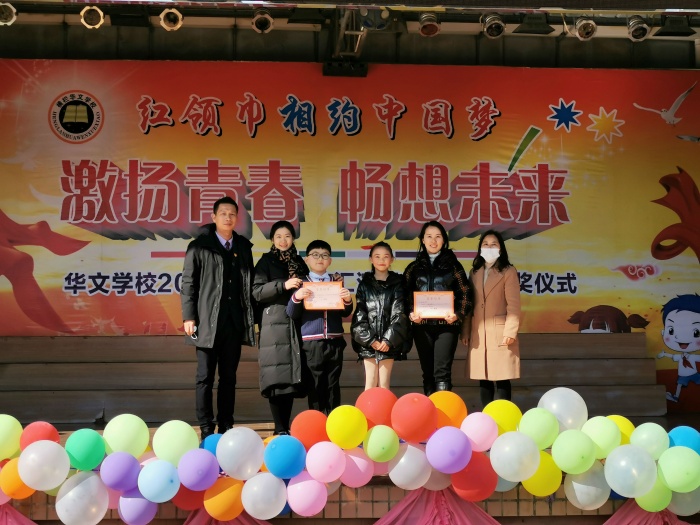 然后進(jìn)行的是頒獎(jiǎng)儀式,賈如意副校長、汪芳副校長等現(xiàn)場為學(xué)?!白蠲乐驹刚摺奔矮@得“華文好少年”稱號(hào)的學(xué)生們頒發(fā)證書并合影留念。