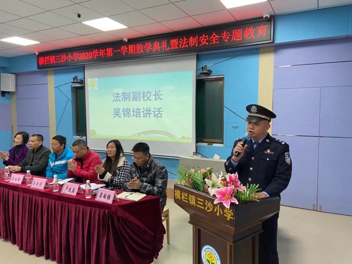 為了更好地對(duì)過去的一個(gè)學(xué)期進(jìn)行總結(jié),同時(shí)也為了幫助學(xué)生更合理地規(guī)劃寒假生活,2021年1月15日上午,橫欄鎮(zhèn)三沙小學(xué)在學(xué)校一樓錄播室舉行了2020-2021學(xué)年第一學(xué)期散學(xué)典禮暨法制安全專題教育。