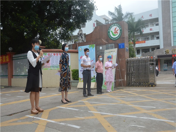 為有效應(yīng)對開學(xué)后可能會發(fā)生的突發(fā)狀況,提高應(yīng)急預(yù)案的合理性、有效性、可行性,促進(jìn)校園疫情防控應(yīng)急處置的科學(xué)化、標(biāo)準(zhǔn)化、程序化,扎實做好學(xué)生復(fù)課前的疫情防控準(zhǔn)備,確保老師們都能熟練掌握應(yīng)急流程和科學(xué)的處理方法,5月14日下午,橫欄小學(xué)組織開展返校復(fù)學(xué)疫情應(yīng)急處置現(xiàn)場演練活動。橫欄鎮(zhèn)教育事務(wù)指導(dǎo)中心專干吳炳炎同志、橫欄鎮(zhèn)駐校衛(wèi)生健康副校長林芳醫(yī)生、橫欄鎮(zhèn)駐校醫(yī)護(hù)人員陳鳳嬌護(hù)士,以及橫小全體教師參加觀摩了本次現(xiàn)場演練活動。