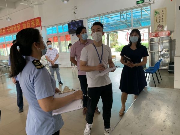 為做好第三批學(xué)生返校工作,提高學(xué)校食品安全管理意識,保障師生用餐安全,2020年5月16日上午,中山市市場監(jiān)督管理局工作人員蒞臨四沙小學(xué)進(jìn)行復(fù)學(xué)學(xué)校食品安全檢查。橫欄鎮(zhèn)教育事務(wù)指導(dǎo)中心主任霍嘉俊、四沙小學(xué)校長歐慧芳及學(xué)校負(fù)責(zé)食堂的副校長古焯煊、食堂負(fù)責(zé)人及食品安全管理員陪同檢查。