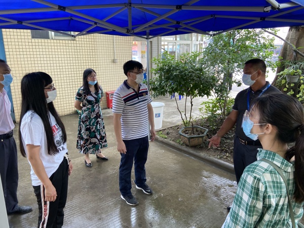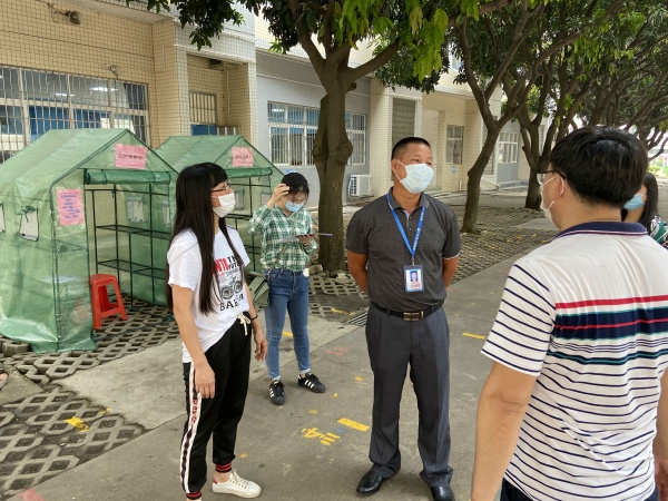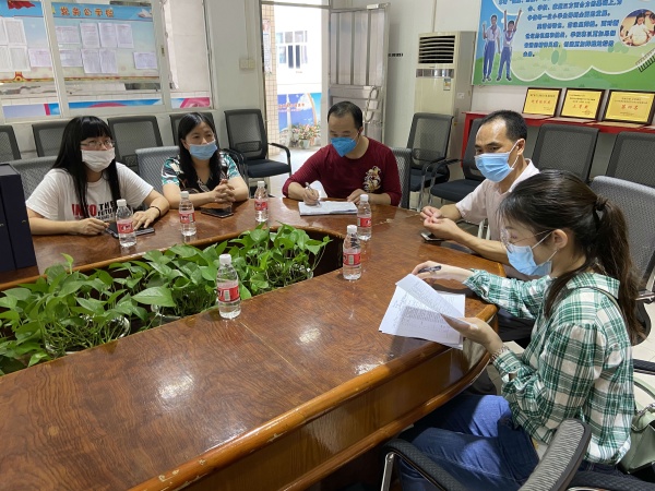 接著,大家來到學(xué)校的會(huì)議室,就學(xué)校的開學(xué)準(zhǔn)備工作進(jìn)行了詳細(xì)深入的交流:返校學(xué)生有多少人?教職工有多少人?有沒有校醫(yī)?開學(xué)準(zhǔn)備工作有沒有驗(yàn)收?有沒有課外活動(dòng)方案?是否有因疫情不能返校的師生?等等。游贊球主任、黃燕芬副校長(zhǎng)和游學(xué)偉校長(zhǎng)對(duì)這些問題進(jìn)行了詳細(xì)的匯報(bào)。冼景文副科長(zhǎng)對(duì)學(xué)校的開學(xué)準(zhǔn)備工作表示肯定,并提出要求:學(xué)校新加入的教師和學(xué)校配餐公司的新工作人員,要做核酸檢測(cè);學(xué)校要按要求做好工作,有情況及時(shí)上報(bào)。