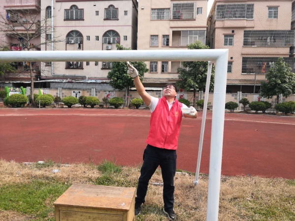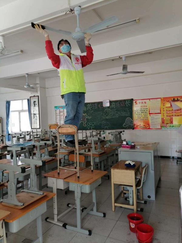 當(dāng)天上午9點(diǎn)整,全體參加志愿服務(wù)活動(dòng)的老師準(zhǔn)時(shí)集中到了一樓。游學(xué)偉校長(zhǎng)對(duì)大家進(jìn)行了志愿活動(dòng)總動(dòng)員,對(duì)清潔區(qū)域和人員進(jìn)行了分工部署,并提出注意事項(xiàng)。隨后,全體教師到劃分好的區(qū)域進(jìn)行衛(wèi)生清理。在清潔勞動(dòng)中,老師們個(gè)個(gè)熱情高漲,干勁十足。大家團(tuán)結(jié)協(xié)作,有的在班級(jí)進(jìn)行風(fēng)扇清理,有的在學(xué)校運(yùn)動(dòng)場(chǎng)對(duì)圍墻上的宣傳大字、圖案進(jìn)行涂色翻新,有的在學(xué)?;@球場(chǎng)對(duì)籃球架進(jìn)行涂色翻新……大家忙忙碌碌,一直干到中午,都累出了一身汗,但是看到教室里的風(fēng)扇變得干干凈凈,圍墻上的宣傳大字變得漂亮醒目,籃球架也披上了靚麗的“新衣”,大家都高興地笑了?! ?