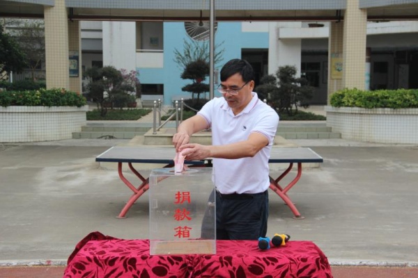 據(jù)悉,學(xué)校德育處積極響應(yīng)中山市政府及中山市紅十字會的號召,早在9月1日開學(xué)典禮時就發(fā)出倡議,呼吁全體學(xué)生在自愿的前提下,伸出無私的援助雙手,用自己積攢的零用錢,為貧困群眾奉獻一份愛心,為慈善事業(yè)貢獻一份力量。學(xué)校的老師們則早在11月6日大課間就進行了捐款,給孩子們樹立了榜樣。