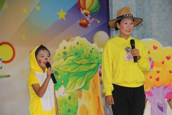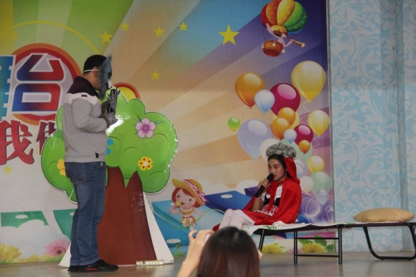 親子講故事比賽分為低年級(jí)組和中高年級(jí)組分別進(jìn)行,首先進(jìn)行的是低年級(jí)組的比賽,隨后進(jìn)行的是中高年級(jí)組的比賽。低年級(jí)組的親子選手分別講述了《憫農(nóng)》、《狼和小羊》、《孔融讓梨》、《小公雞和小鴨子》、《猜猜我有多愛你》等故事,中高年級(jí)組的親子選手則演繹了《小紅帽》、《小馬過河》、《母愛》、《狼來了》、《東郭先生和狼》等故事。親子選手們的故事講述能夠做到普通話標(biāo)準(zhǔn)、咬字清晰,準(zhǔn)確把握人物的語氣,講述流利、生動(dòng),并利用豐富的背景布置創(chuàng)設(shè)出故事情境,再加上栩栩如生的頭飾、服飾,親子們演繹了一個(gè)個(gè)生動(dòng)的故事角色。例如,二(3)班王???、王晨曉父女演繹的《狼和小羊》中,生動(dòng)塑造了兇惡、狡猾的狼和天真、善良的小羊,給觀眾帶來許多笑聲和有益的啟發(fā);李嬋娟、吳梓晴母女演繹的《坐井觀天》既有生動(dòng)的講述、又結(jié)合了舞蹈、歌唱等元素,給觀眾們帶來了一個(gè)精彩又富有啟發(fā)意義的故事。