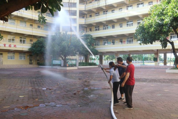 消防安全工作不僅要掌握理論知識(shí),更重要的是進(jìn)行實(shí)際操作。為了提高職工的實(shí)際消防操作能力,培訓(xùn)班還安排在學(xué)校教學(xué)樓前的空曠地進(jìn)行滅火實(shí)操訓(xùn)練。黃富榮給大家演示正確使用滅火器進(jìn)行滅火以及正確使用消防栓的實(shí)操示范,然后讓每個(gè)后勤職工進(jìn)行實(shí)際操作訓(xùn)練。