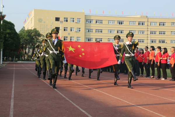 噠!噠!噠!整齊劃一的正步,國旗護(hù)衛(wèi)隊(duì)護(hù)送國旗,走向升旗臺(tái)。“全體肅立,升國旗,奏唱國歌!”在莊嚴(yán)、激昂的國歌聲中,五星紅旗冉冉升起,迎風(fēng)飄揚(yáng)。全體師生精神抖擻,心潮澎湃,此時(shí)此刻,大家的內(nèi)心都高呼著:五星紅旗,你是我的驕傲!五星紅旗,我為你自豪!