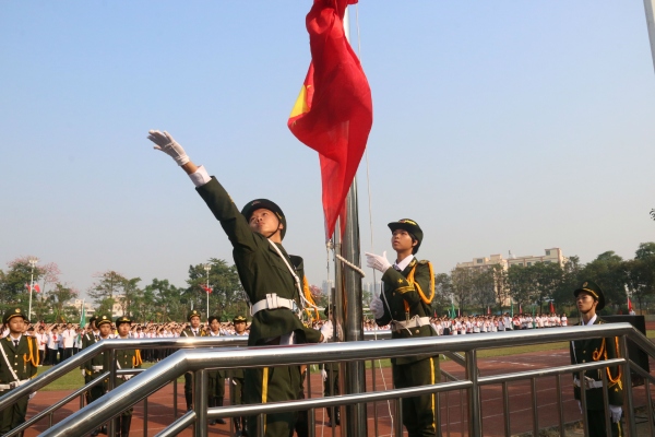 70年風(fēng)雨兼程,70年砥礪奮進(jìn)。橫欄鎮(zhèn)教育事務(wù)指導(dǎo)中心霍嘉俊主任在國旗下為慶祝新中國成立70周年致辭。他回顧了新中國成立70年來橫欄鎮(zhèn)在黨的領(lǐng)導(dǎo)下的光輝發(fā)展歷程,列舉了橫欄鎮(zhèn)取得的一系列輝煌成就,并引用“家是最小國,國是千萬家”這句歌詞,號(hào)召全體師生要有一顆“中國人的心”,把拳拳赤子心,濃濃愛國情融入自己的血液當(dāng)中,把愛國、愛黨、愛家融入到自己的一言一行中去,用實(shí)際行動(dòng)向“禮贊新中國 奮進(jìn)新時(shí)代”獻(xiàn)禮。