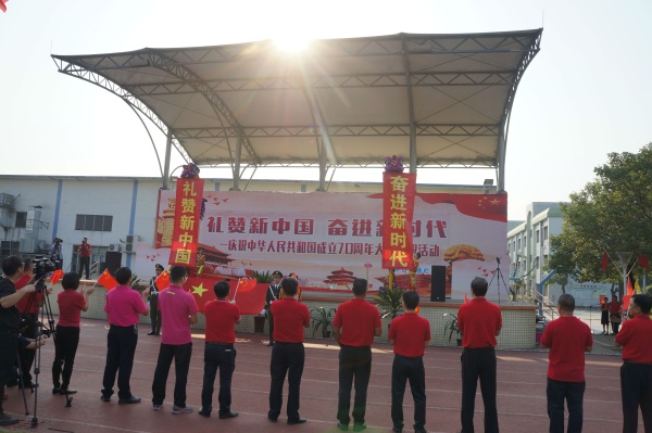 九州翔游,舉國歡慶;七十華誕,龍騰東方。9月30日上午,中山市橫欄中學(xué)全體師生舉行了中華人民共和國成立70周年大型慶?;顒?dòng)。橫欄鎮(zhèn)黨委委員、副鎮(zhèn)長梁澤基,橫欄鎮(zhèn)教育事務(wù)指導(dǎo)中心的全體同志一起出席了慶?;顒?dòng)。