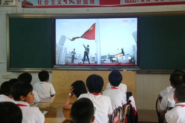 在開學的第一周,學校還組織全體師生觀看由央視播放的“開學第一課”專題電視節(jié)目,節(jié)目亦以“五星紅旗,我為你自豪”為主題講述了許多催人淚下或振奮人心的建國故事。隨后,各班還利用課間時間開展了形式多樣的“我為國旗獻禮”的教育活動,學生們的擦淚舉動,印證了愛國主義教育已如春風一般,吹進了他們的內(nèi)心,后又化為種子,悄悄地扎根生長。
