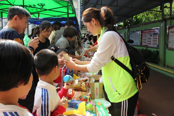 各班的家長義工早早地來到活動現(xiàn)場,布置義賣點的攤位,打出宣傳標(biāo)語,展臺、義賣海報布置得五彩繽紛?!傲x賣有價,愛心無價”“義賣,收獲的不僅是快樂,更是心靈的寬慰”“節(jié)省一分錢,獻(xiàn)出一份愛,溫暖世間真情”……學(xué)校操場上,一幅幅標(biāo)語,使活動現(xiàn)場充滿了濃濃的愛意。
